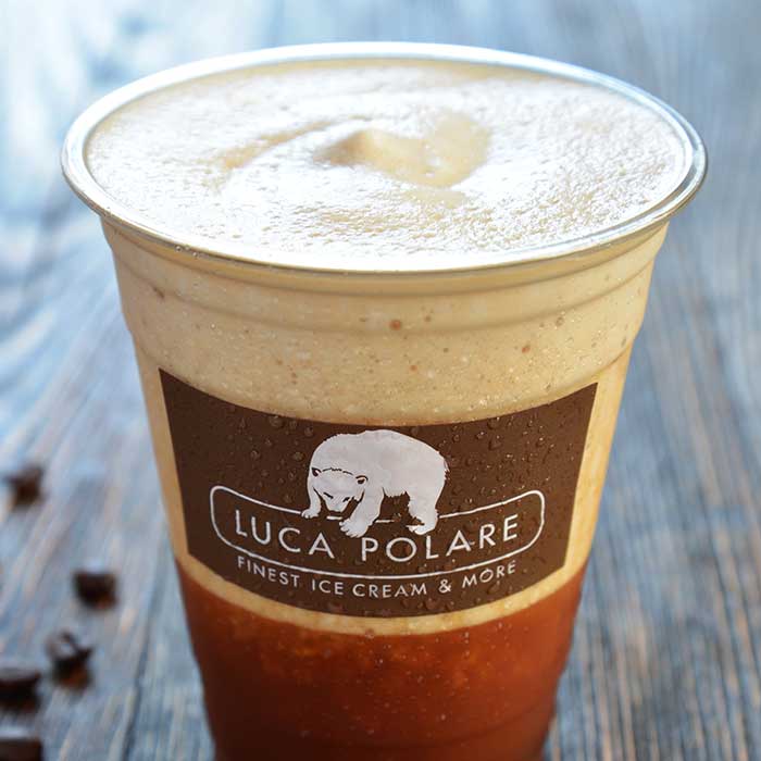 გამაგრილებელი ცივი სასმელი ესპრესოთი, რძით, ნაყინით, ყინულით და ვანილის, კარამელის, ამარეტოს ან დარიჩინის არომატით